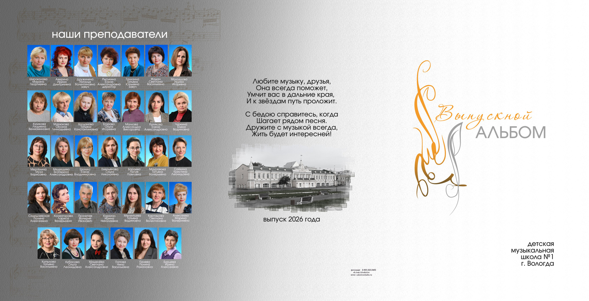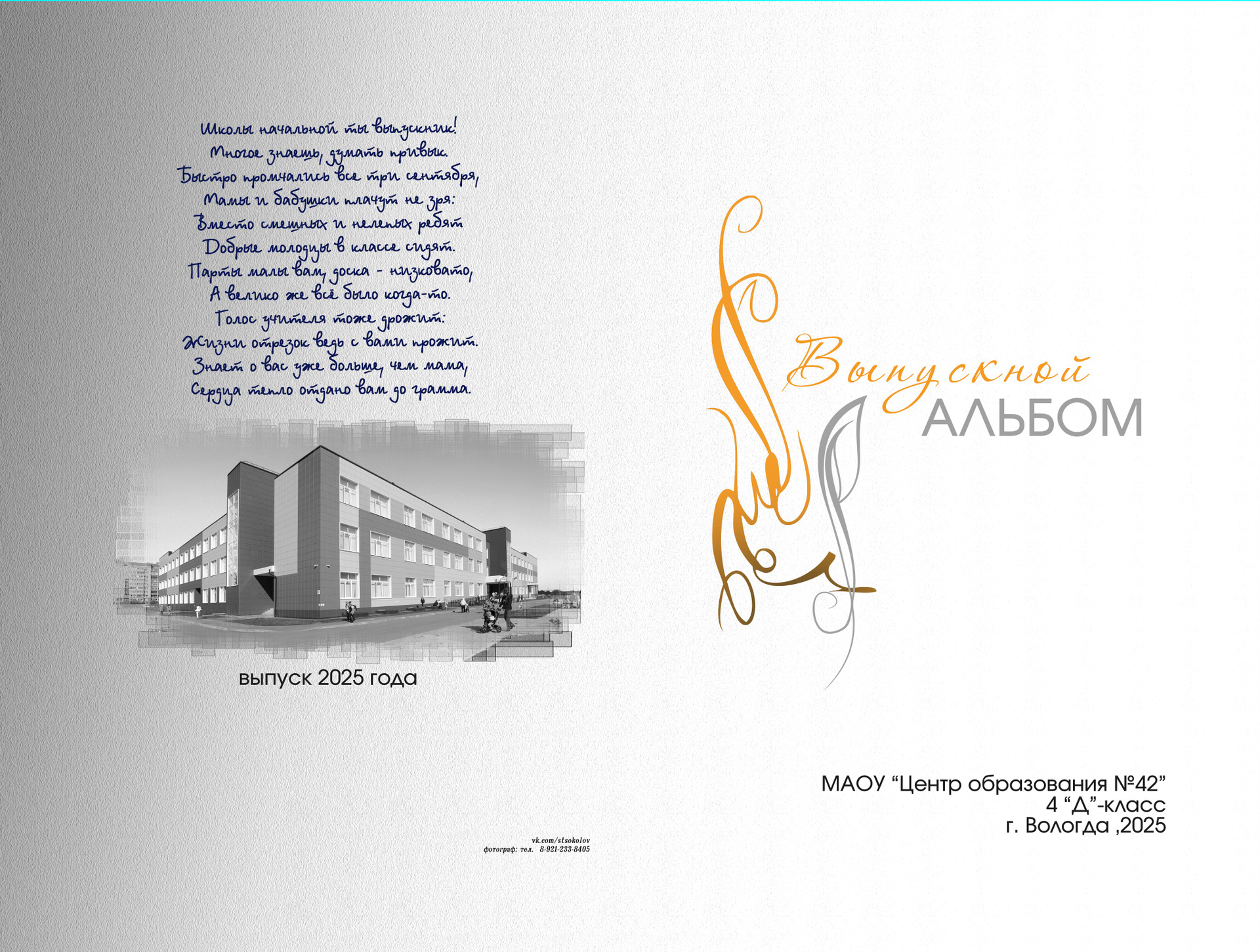 дизайн подходит для старшей и средней школы у кого имеется не ограниченное количество своих жанровых снимков
