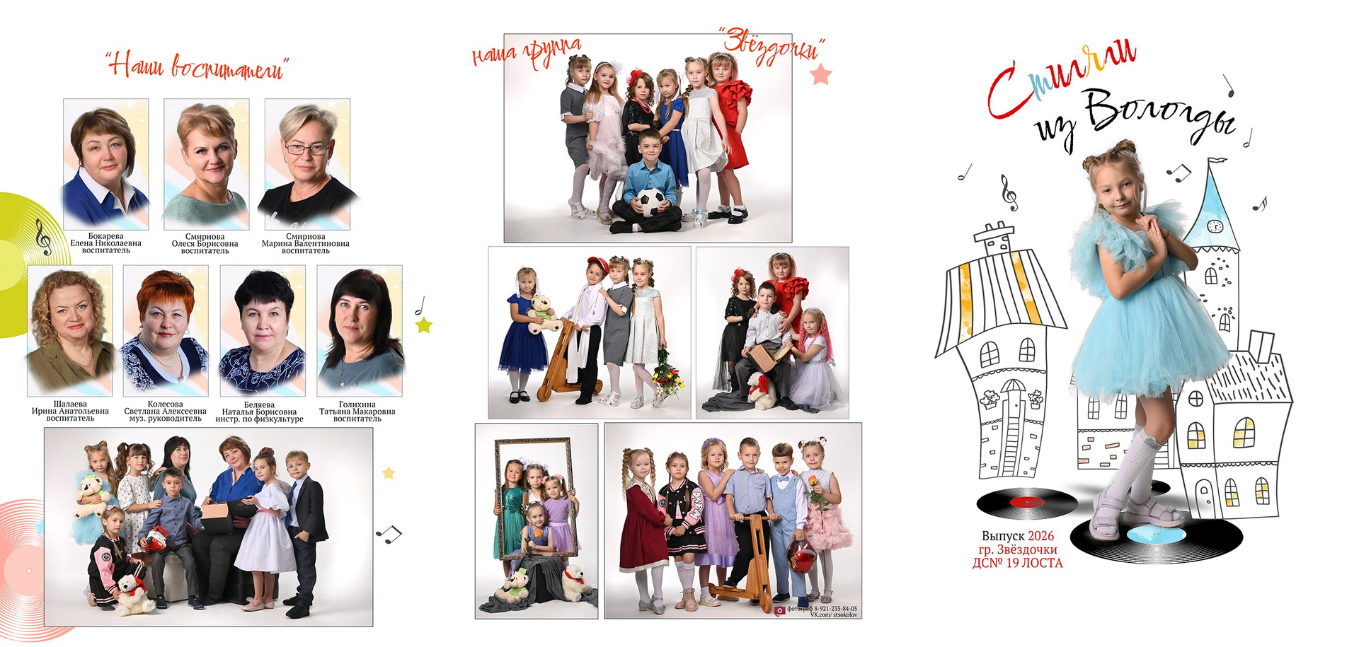 Можно выполнить в формате фотокниги, папки-трюмо или планшета, если ваша группа совсем маленькая
