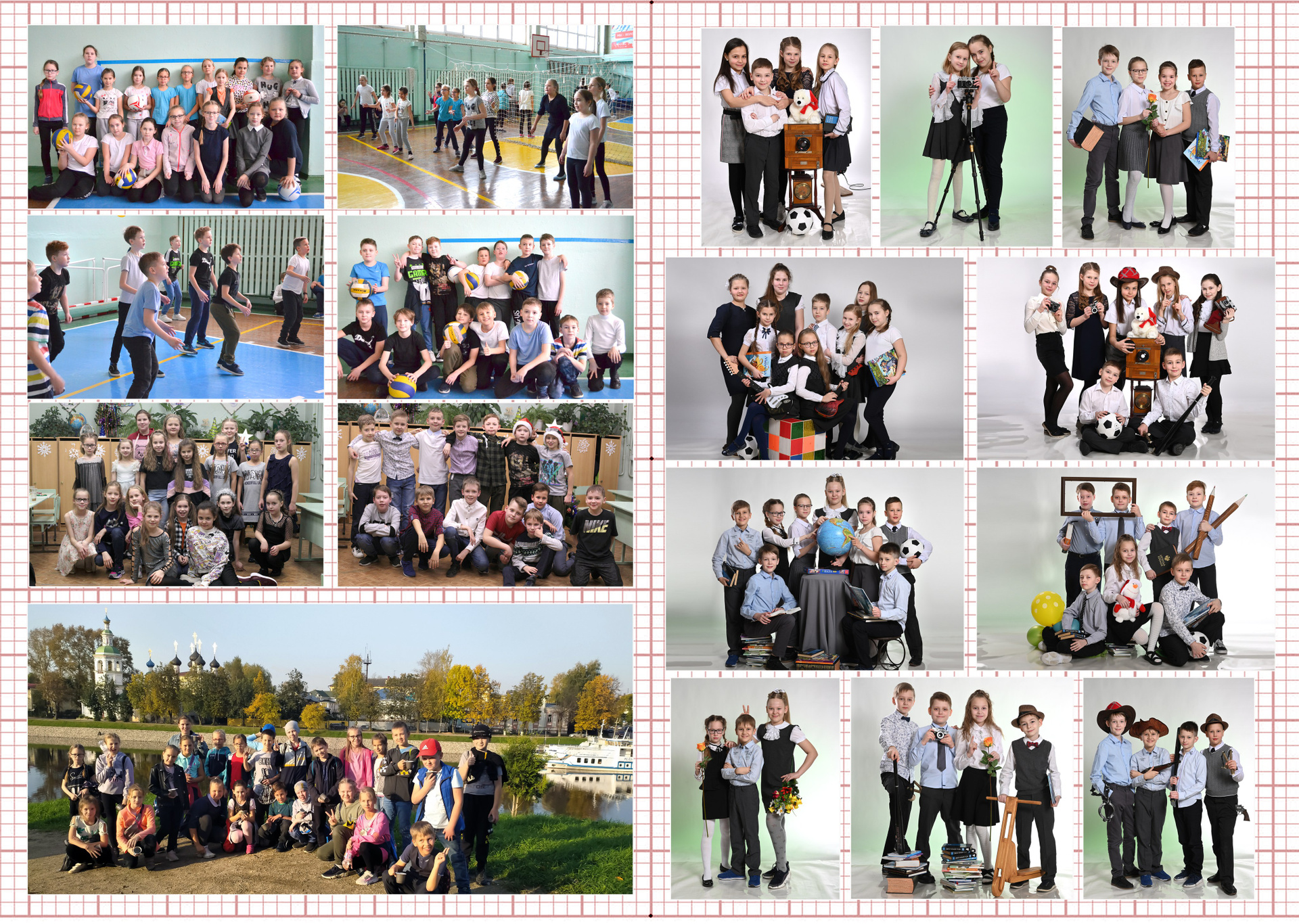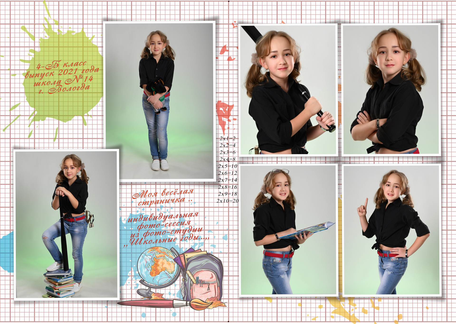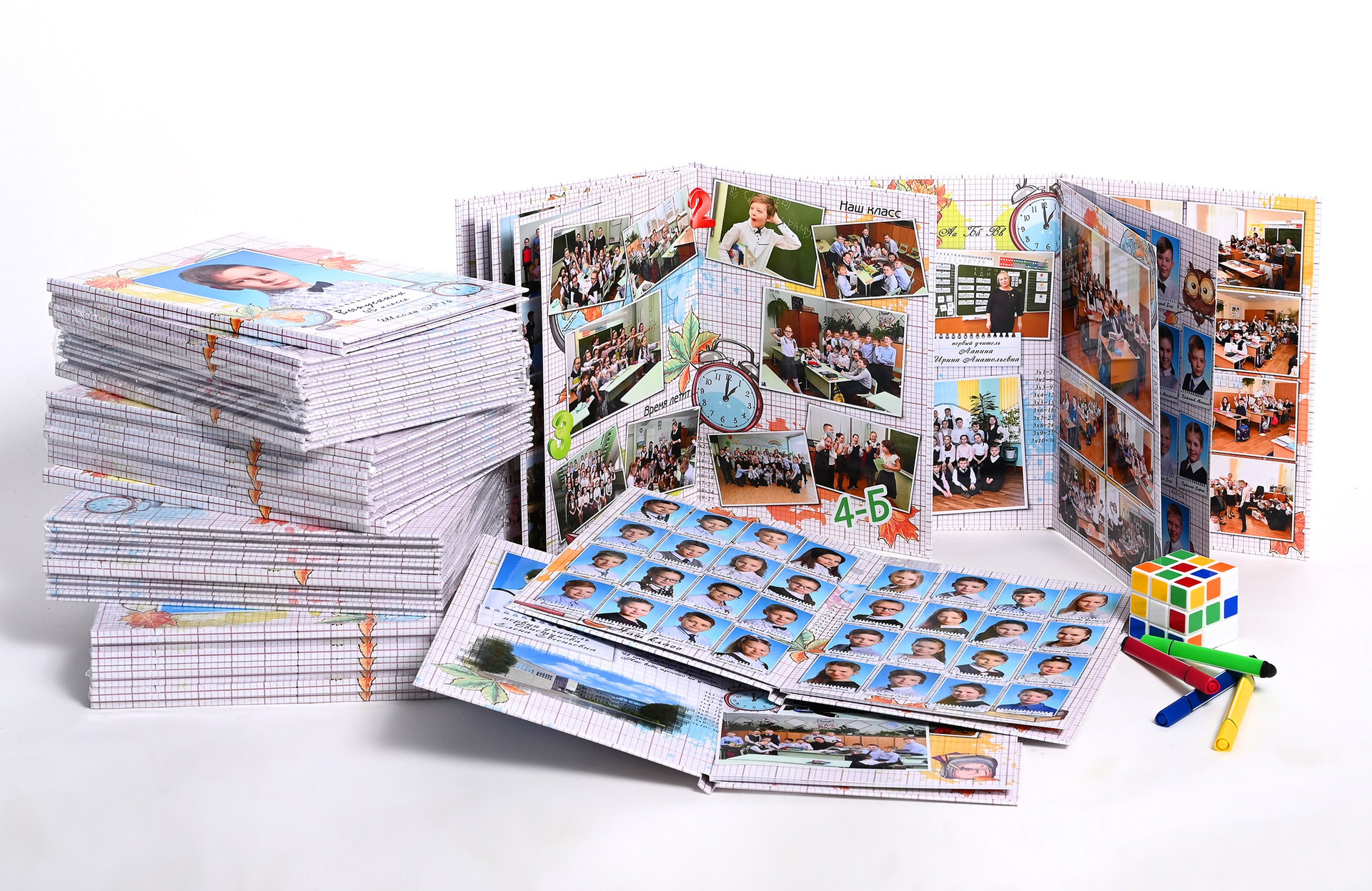 Стильный не навязчивый по оформлению и содержанию альбом. Выполненный в светлых тонах на фоне школьной тетрадки. Идеально подойдет если в вашей фото-теке собрано много снимков с разных лет учебы. Так-же можно сделать в виде планшета или папки-трюмо.